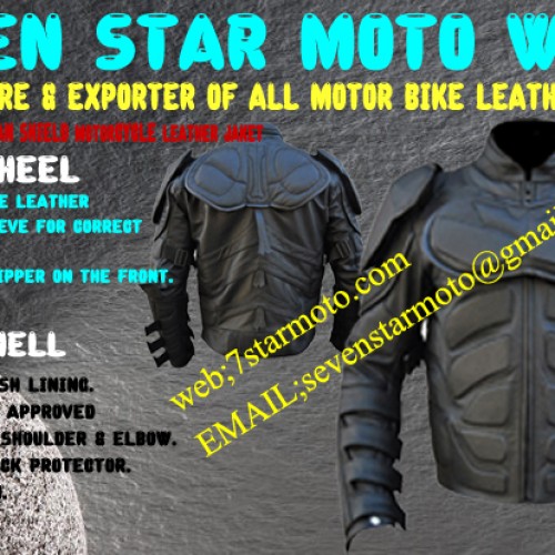 SEVEN STAR MOTO WEAR is producing leather goods for the last 5 years and is constantly pursuing the aim of achieving the highest standards commensurate with the international standards. Our products are of very high quality taking utmost care in minute details, workmanship, and materials .It is our constant endeavor to provide competitive edge to our valuable customers, by offering cost effective prices along with top quality products so that we can win the hearts of the people and capture major share in the market. We also provide OEM service for every type of leather goods. Full support and cooperation is provided for creating custom products, developing new products or carrying variations on existing products. Due to our valuable experience in this field we can provide full support in any research project for our valuable customers. We do not have any hesitation/objection if our customers want to have their own logo on our products.